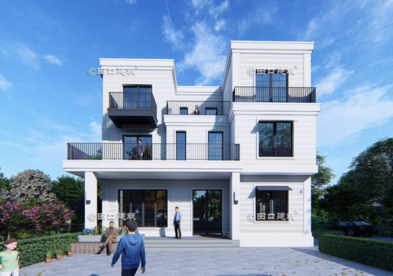 占地面積 288.4㎡ 土建造價 120.0萬 白色現(xiàn)代別墅