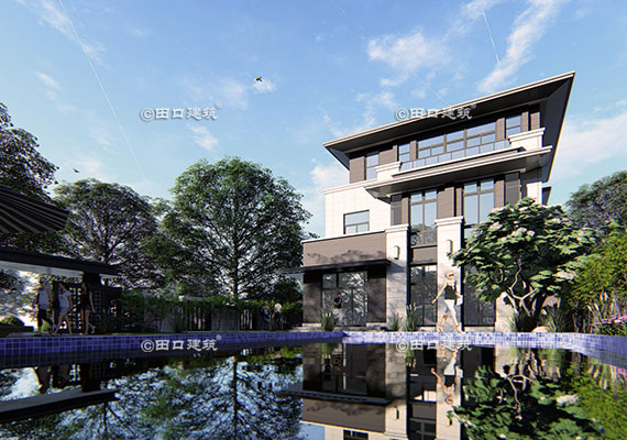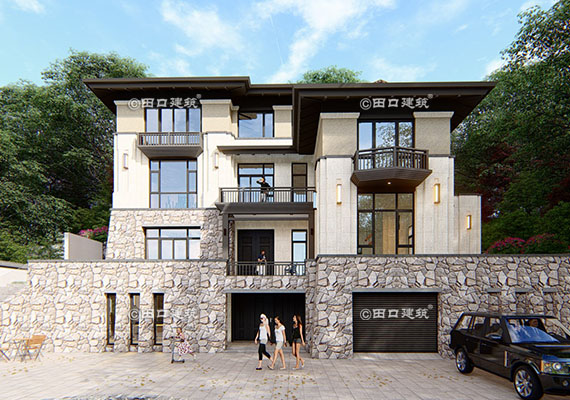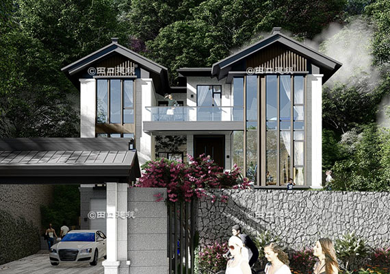 占地面積 261.3㎡ 土建造價 100.0萬 山地中式別墅