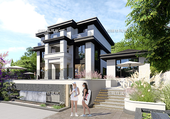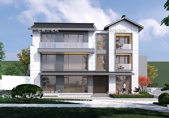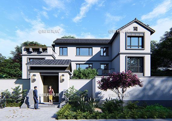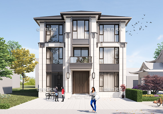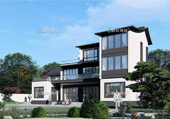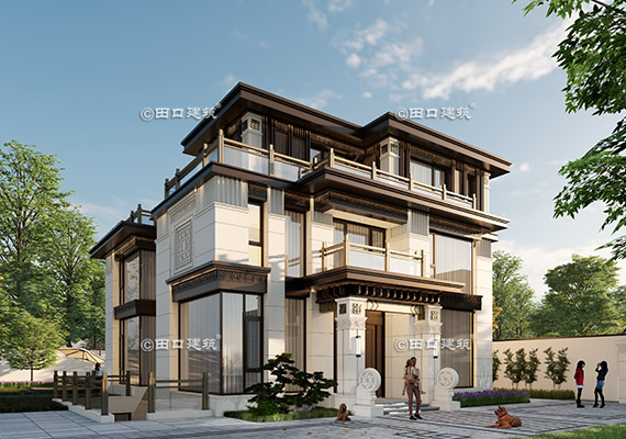 占地面積 131.7㎡ 土建造價 40.0萬 三層新中式小別院